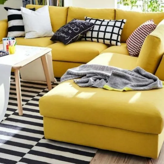 Яркий удобный стильный диван "Милтон", на четыре и более сидячих места с прямыми дизайнерскими подлокотниками и наклонной спинкой.Размер (ШхГЛхВ) 2300х2000х1100. (Возможен любой размер и цвет(более 500 тканей)Механизм "дельфин" Спальное место 2000х1600 (ортопедический блок, подходит для постоянного сна).Независимый (ортопедический) пружинный блок, ППУ, синтепон, холкон, наполнение подушек-холлофайбер (эко-пух).